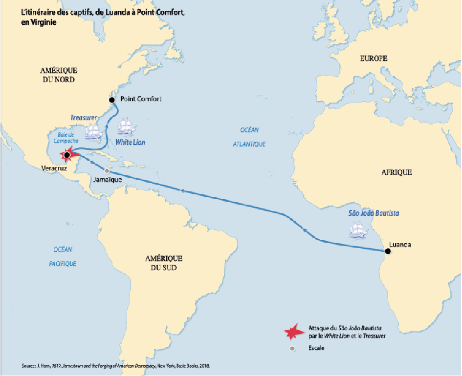 [3] Le White Lion a vendu une vingtaine de captifs le 24 août 1619, quelques jours plus tard, le Treasurer en a vendu trois ou quatre.