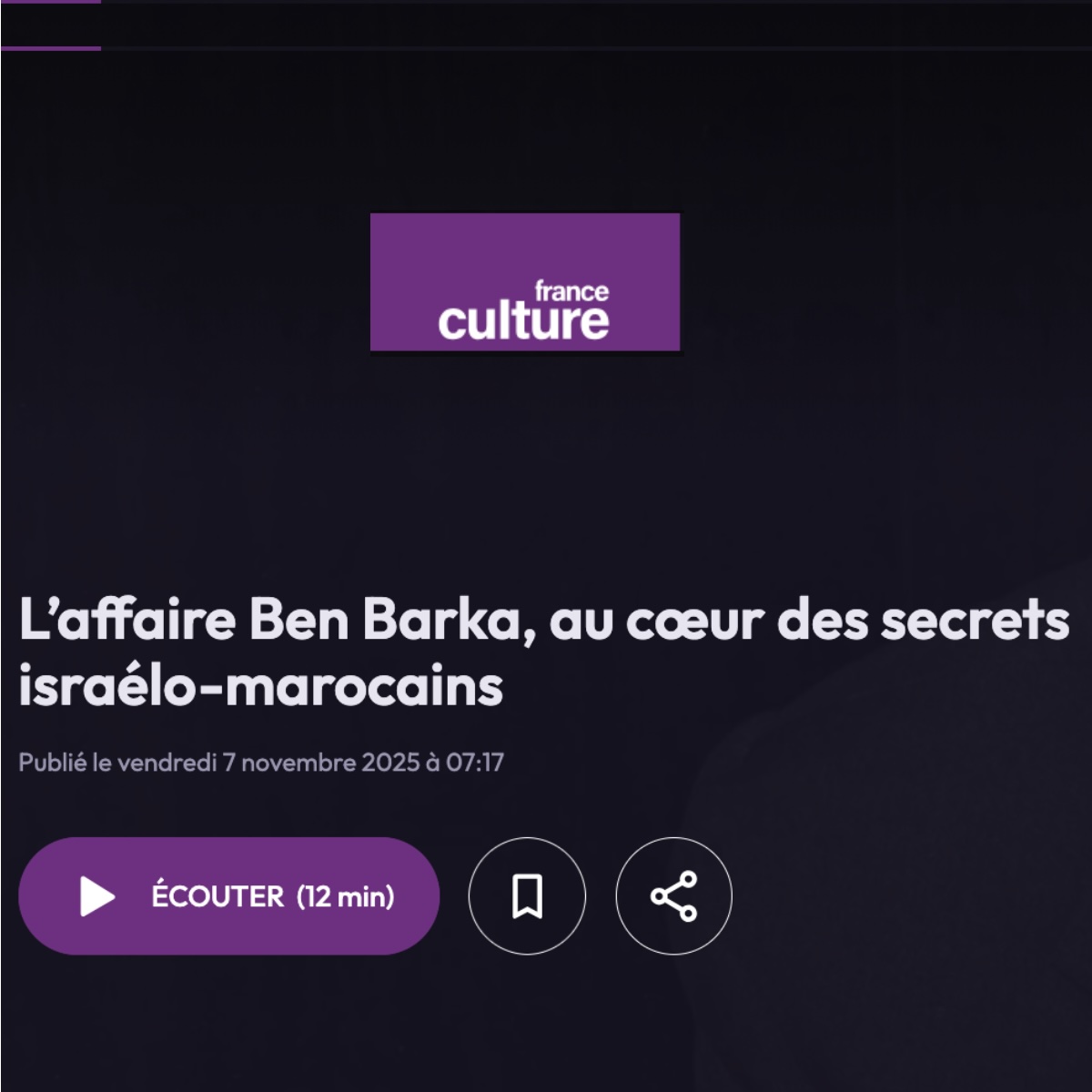 Les journalistes Stephen Smith et Ronen Bergman livrent les résultats d’une investigation inédite sur cette affaire, enrichie par la déclassification de documents longtemps tenus secrets, dans un ouvrage intitulé L’affaire Ben Barka, la fin des secrets, paru le 29 octobre 2025 chez Grasset. Alors que l’enlèvement survient dans un contexte de fortes tensions entre Israël et les pays arabes, que sait-on de l’ampleur de l’implication du Mossad dans cette affaire ? Et que révèle-t-elle des liens si particuliers, à l’époque, entre Israël et le royaume du Maroc ?