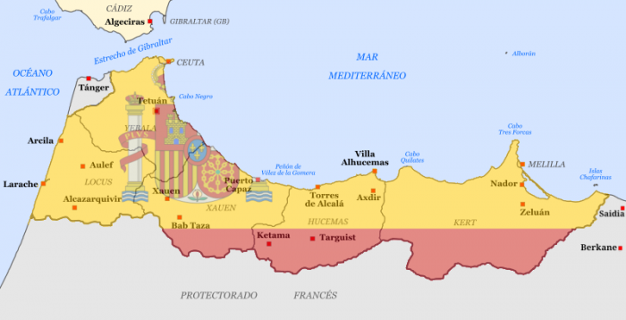 Carte espagnole du Nord du Maroc indiquant les limites des protectorats espagnols et français