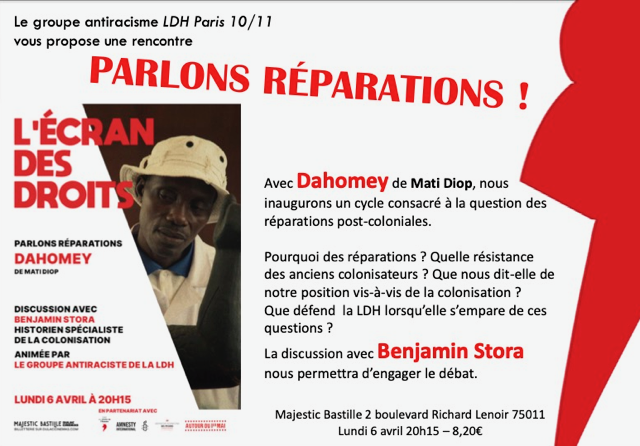 La question de leur restitution fait partie de celle de la « sortie du colonialisme » et du dépassement des rapports coloniaux au profit de l’établissement de rapport normaux entre les Etats des différents continents. Elle est au centre du film de Mati Diop, « Dahomey », qui sera projeté le 6 février au Majestic Bastille (à Paris, place de la Bastille), suivi d’un débat sur le thème des réparations avec sa réalisatrice et l’historien Benjamin Stora. Celui-ci, dans le prolongement du rapport qu’il avait remis au président de la République, a participé à Stains à une présentation d’armes et objets ayant appartenus à l’émir Abd El Kader, rassemblés dans le but de procéder à leur restitution.
