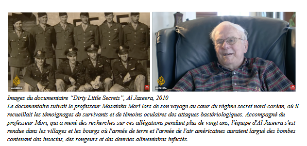 Kenneth Enoch, ancien pilote américain, lors de sa capture par les communistes, révèle des détails troublants sur son implication pendant la guerre de Corée. Il avait initialement confessé avoir participé au largage d’agents biologiques imposé par le gouvernement américain. Mais de retour aux États-Unis, tout comme ses camarades, il se rétracte, affirmant que les aveux avaient été obtenus sous la contrainte. En 2010, Al Jazeera réalise le documentaire « Petits secrets inavouables », dans lequel on retrace l’histoire des allégations. La parole sera donnée à un Kenneth Enoch alors âgé, qui affirme avoir été contraint de mentir sur le traitement reçu lors de sa capture ainsi que sur les missions données lors de son séjour en Corée en 1952[12].