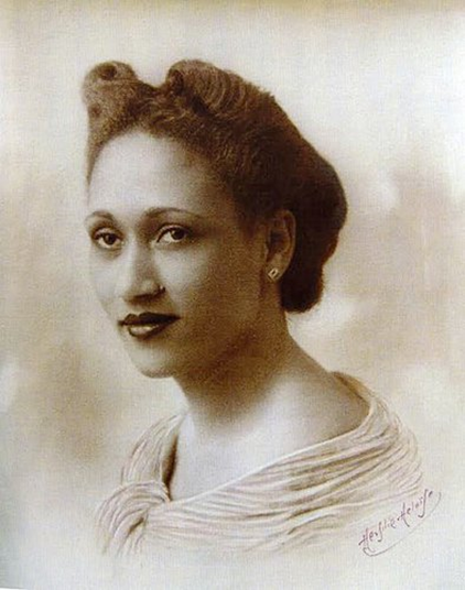 Mayotte Capécia en 1946, photographie extraite du livre Relire Mayotte Capécia de Myriam Cottias et Madeleine Dobie, éd. Armand Colin.