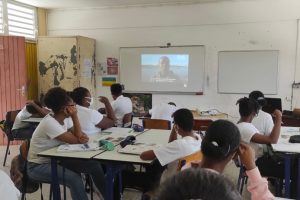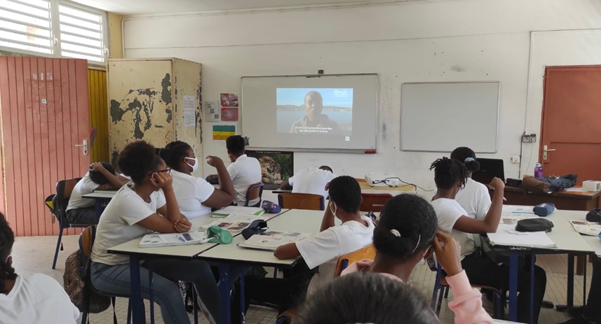 Des collégiens dans un cours d’histoire dans un collège de Martinique, 2021