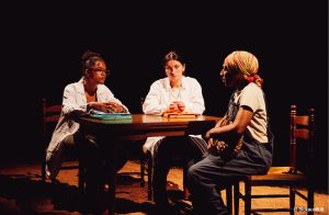 Yassim Ait Abdelmalek. Oui, on a souvent parlé de ces questions justement pendant la création, on retrouve cela aussi dans beaucoup de familles issues de l’immigration, par exemple comment les attitudes divergent d’une génération à l’autre. Dans la pièce, la grand-mère paraît très sûre d’elle-même, alors que la mère a plutôt tendance à temporiser, prendre les coups ; et, à l’opposé, la petite-fille, elle, va essayer de se battre. La pièce interroge les manières dont ces trois générations affrontent leur passé et la vie aujourd’hui. On a appris à une génération à se taire, à faire profil bas, à moins parler de ces choses-là. C’est pour ça, d’ailleurs, que vous nous demandiez si on n’avait pas peur de parler du rôle du Groupe Bernard Hayot (GBH), c’est aussi à notre génération de prendre la parole aujourd’hui.