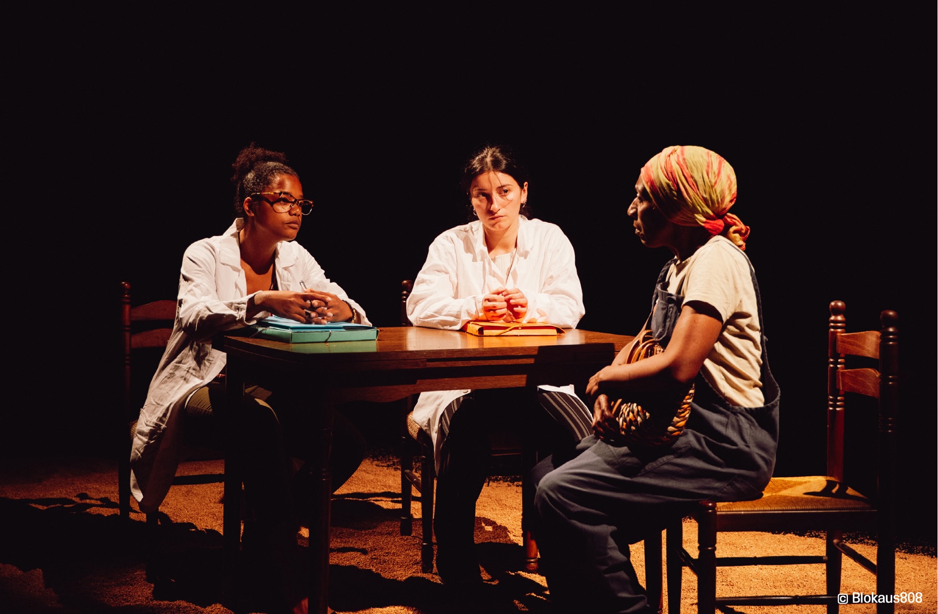 Comment l’impensable d’aujourd’hui a-t-il pu se produire hier ? Béatrice Bienville (texte et mise en scène) et Yassim Ait Abdelmalek (mise en scène) interrogent à travers cette histoire comment cela a pu se produire, le mépris de cet « outre-mer » et la façon dont on a rendu justice à ces ouvrier.ère.s agricoles et aux habitant.e.s de l’île. Ce même outre-mer qui ne cesse de crier aux oreilles de la métropole mais que l’on continue à vouloir faire taire, négliger, étouffer. Ils ont choisi des interprètes d’origine caribéennes mais également qui ont l’âge des rôles. « Nous souhaitons ainsi frôler la frontière entre le réel et la fiction, entre le documentaire et l’imaginaire. C’est un théâtre qui croit au pouvoir de la fiction pour nous faire toucher du doigt le réel, pour le déployer dans toutes ces dimensions, le creuser. Cette histoire est une histoire de l’intime qui vient heurter la réalité du monde d’aujourd’hui. On assiste à l’entraide entre générations, à l’entraide entre mères, entre filles, entre femmes comme une éventuelle mais nécessaire solution pour réparer ce qui a pu être détruit », écrivent Béatrice Bienville et Yassim Ait Abdelmalek dans le dossier de presse.